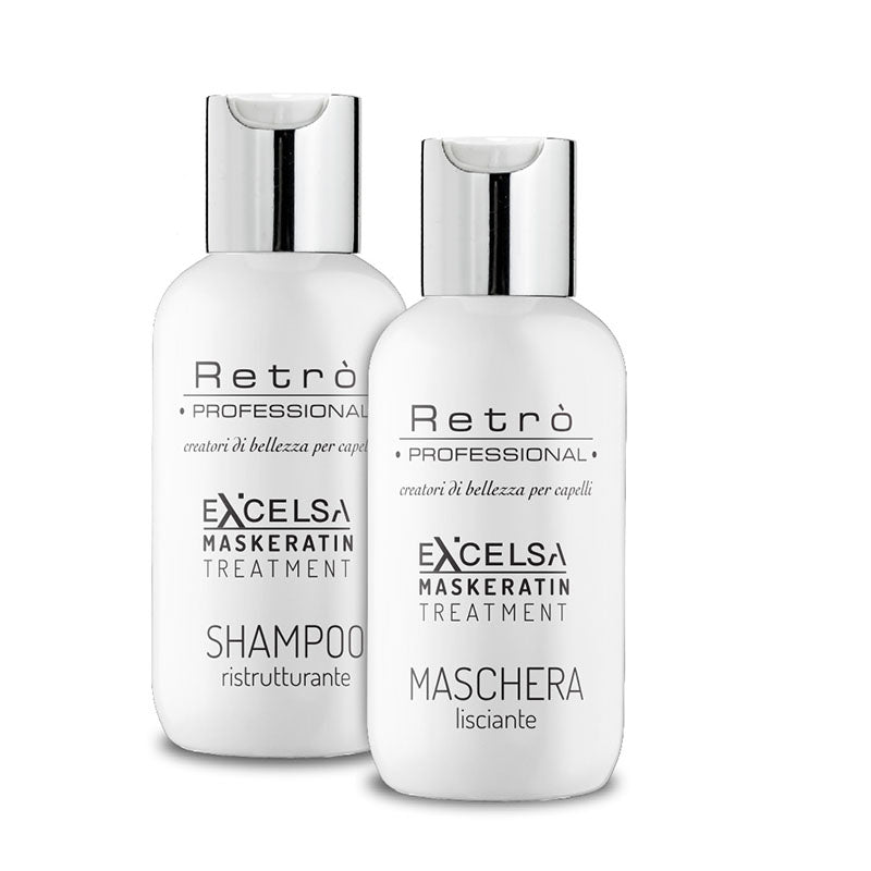Il Kit Excelsa Maskeratin di Retrò è un trattamento tecnico studiato per capelli mossi, crespi, molto trattati o difficili da gestire.