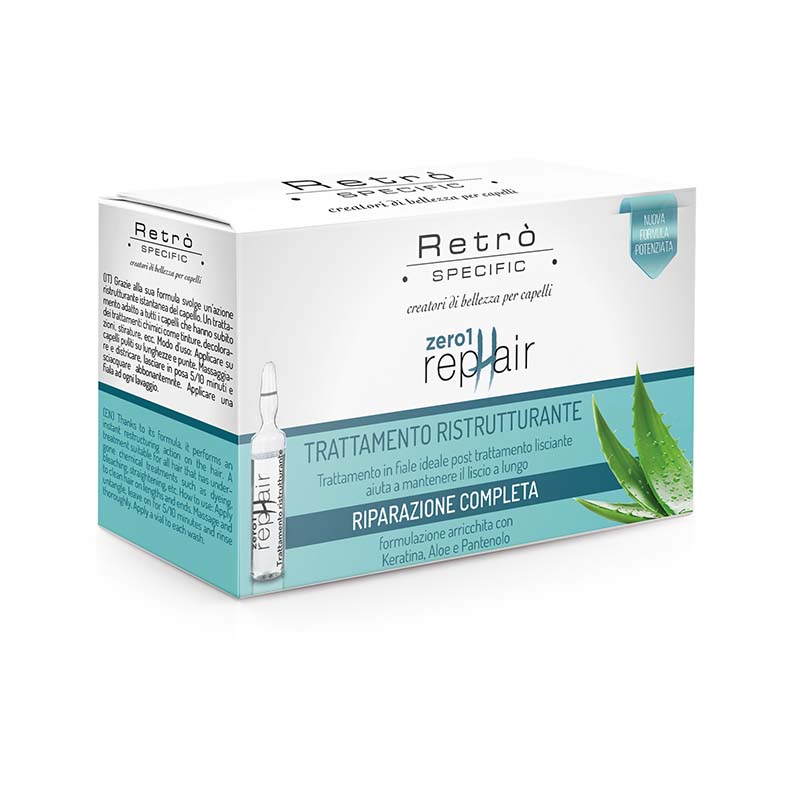 Le Fiale Rephair 01 della linea Repair di Retrò offrono una soluzione ad alta performance per capelli sensibilizzati da trattamenti chimici, meccanici o termo‑stilistici.