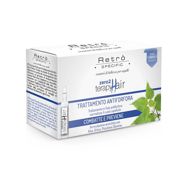 Le Fiale Antiforfora di Retrò (Treatment System 02) sono studiate per combattere efficacemente desquamazione, prurito ed eccesso di sebo, ristabilendo l’equilibrio della cute e migliorando la salute dei capelli.
